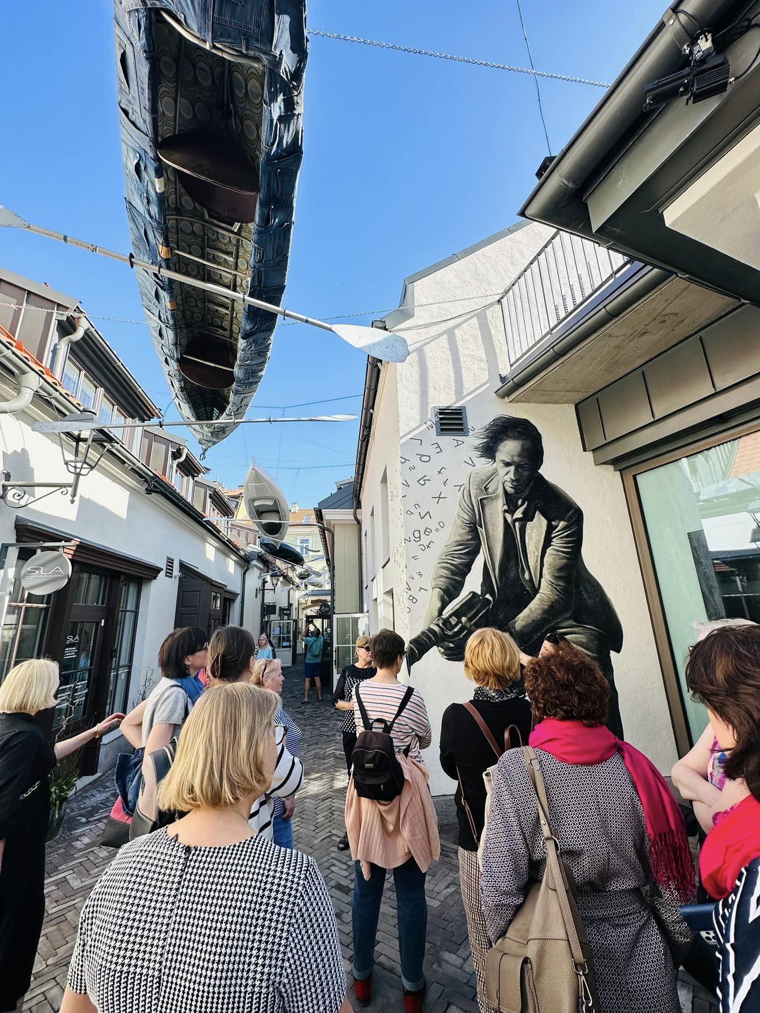 Kelionės dalyviams „vyšnia ant torto“ tapo pasivaikščiojimas po Užupį, kur ypač sužavėjo šio bohemiškiausio sostinės kvartalo atmosfera, nuosava Konstitucija, istorijos, meniški objektai, prabangos ir skurdo kontrastai, be kurių Užupis, ko gero, daug prarastų. Grupė keliautojų ypač dėkinga iškalbingajai gidei Gabijai Lunevičiūtei, kuri papasakojo apie J. Kunčiną ir jo legendinį romaną “Tūlą”, J. Meką, L. Gutauską, R. Granausko ir J. Apučio draugystę… Ar iš balos ta iškalba ir vaizduotė? Pasirodo ne iš balos, o iš kūrybiškų genų. Gidė Gabija yra rašytojo J. Apučio anūkė.