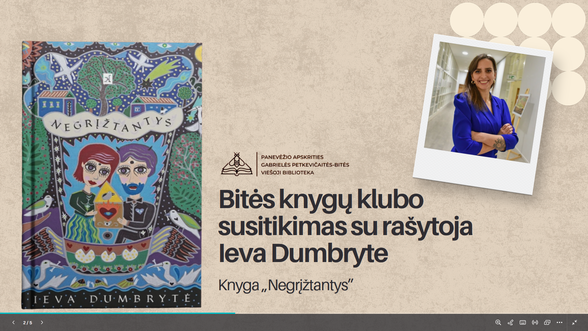 Balandžio 16 d. bibliotekoje vyko išskirtinis Bitės knygų klubo susitikimas – pirmą kartą per dešimt klubo gyvavimo metų pasitaikė proga gyvai susitikti su knygos autore. Klube svečiavosi iš Panevėžio kilusi, šiuo metu Vilniuje gyvenanti rašytoja Ieva Dumbrytė. Klubas susitiko analizuoti romaną „Negrįžtantys“, už kurį autorė pelnė Jurgos Ivanauskaitės premiją. Šis romanas taip pat pateko į […]